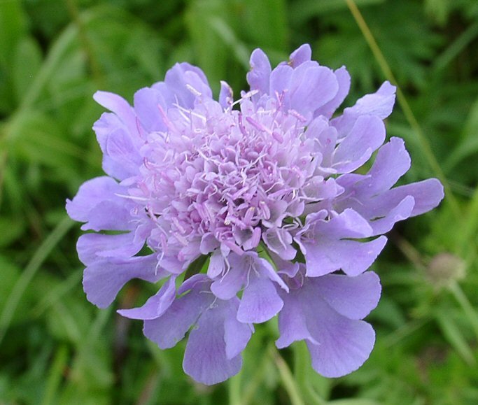 СКАБИОЗА Тёмно-пурпурная Ледяное сердце Восхитительная смесь из белых и лавандово-голубых соцветий. Стебли прямые, ветвистые, 80-90 см высотой. Пушистые крупные соцветия, диаметром до 6 см, на длинных цветоносах. Цветет с июля по октябрь. Используют в группах, рабатках, миксбордерах и на срезку. Срезанные цветы сохраняются в воде 5-7 дней.